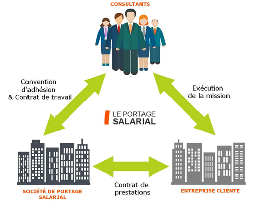 Le Portage salarial fait intervenir une personne physique (désirant être indépendante), une entreprise de Portage salarial et une entreprise cliente de la personne physique.